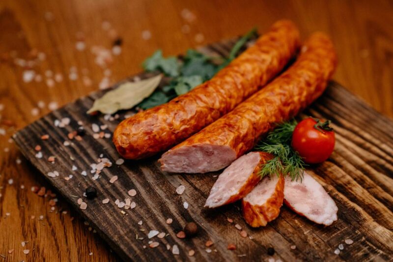 Kiełbasa średnio rozdrobiona, wędzona tradycyjnie, parzona